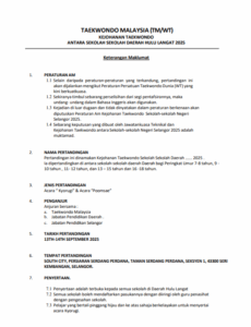 KEJOHANAN TAEKWONDO ANTARA SEKOLAH SEKOLAH DAERAH HULU LANGAT 2025 Welcome to our tournament registration system , you may see the information for this tournament below VIEW PDF BUNDLE VIEW LOCATION Tournament Bout Chart Boutchart will be available after the countdown runs out Interested in Purchasing Taekwondo Gear ? Buy with us using our special promo now Buy Now